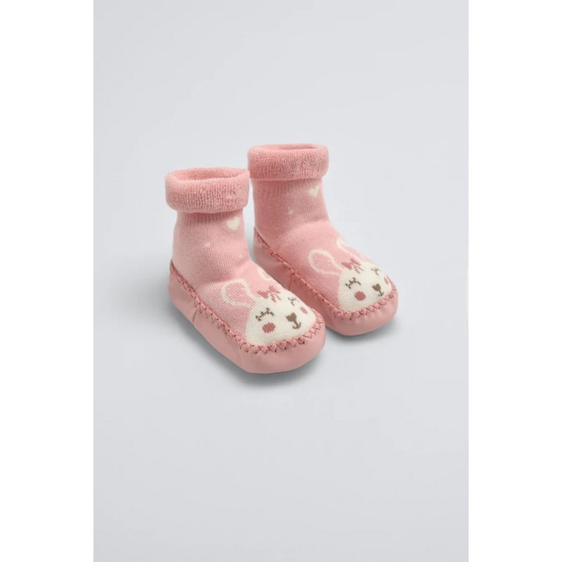 Meia Térmica com Sola Antiderrapante Coelho Rosa