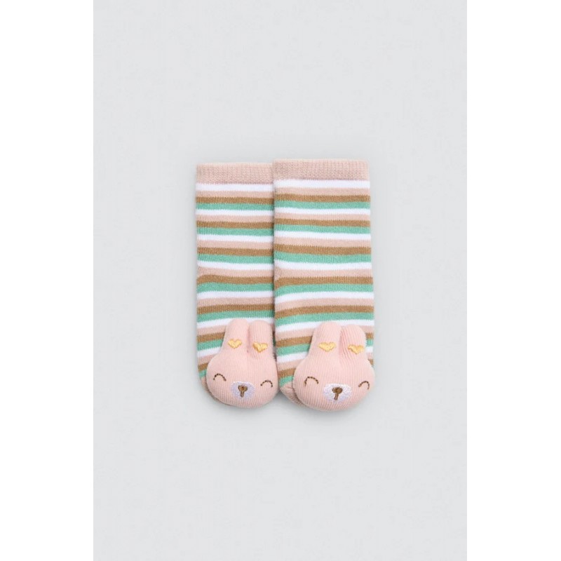 Pack 2 Meias Térmicas Coelho Rosa Com Chocalho