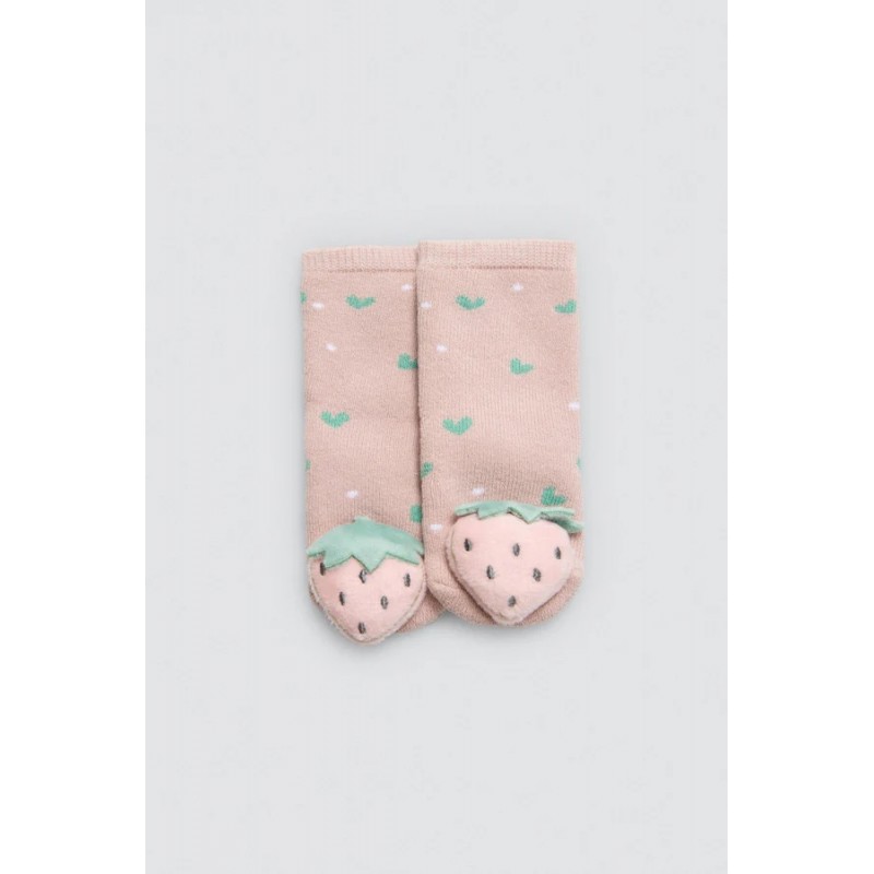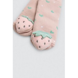 Pack 2 Meias Térmicas Morango Rosa Com Chocalho