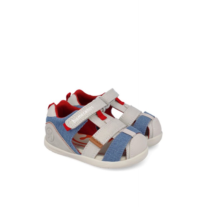 Sandália Lona Básica Bege e Azul BIOMECANICS