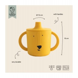 Este copo com bocal permite que o seu filho beba sem derramar, especialmente útil quando está fora de casa.