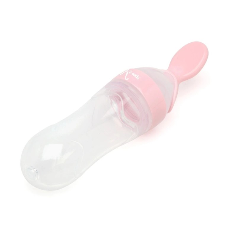 Com uma leve pressão no reservatório flexível e fácil de segurar, a quantidade desejada de alimento é dispensada na colher através de um pequeno bico.