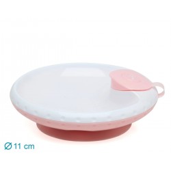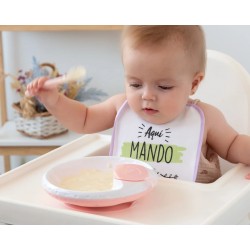 Por um lado a sua ventosa permitirá fixar o prato à cadeira ou à mesa, para evitar que o bebé possa movê-lo ou apoiar-se nele virando-o.