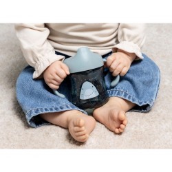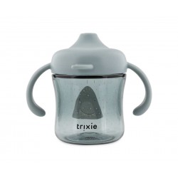 A caneca com bico e alças da Trixie torna a transição da garrafa para a xícara mais fácil e segura.