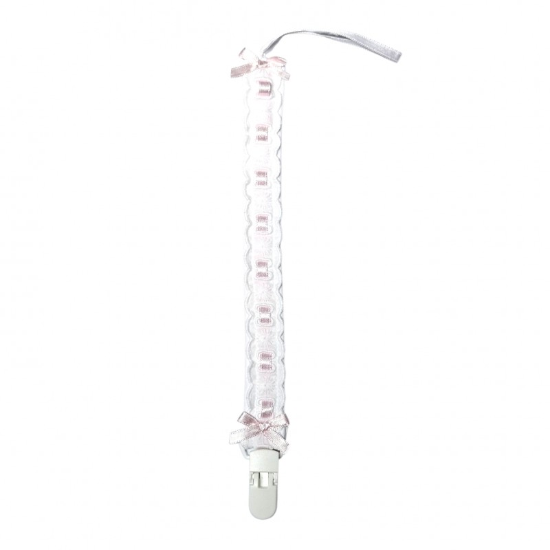 Porta Chupeta para Bebé de Bordado Inglês.