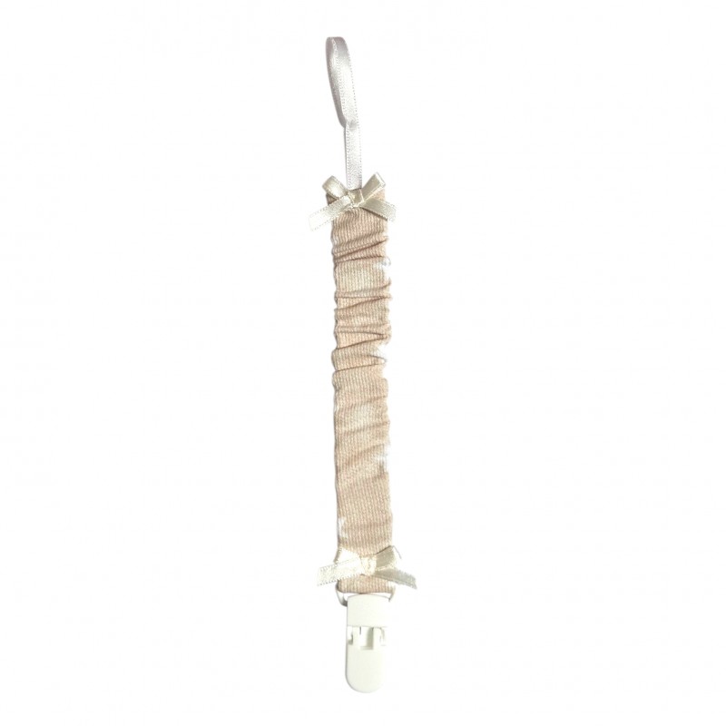 Prendedor de Chupeta Bege Estrelas MAIORISTA