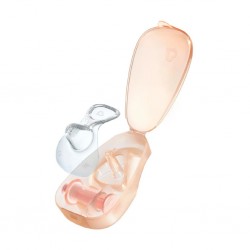 O conjunto inicial completo inclui o protetor de mamilo Flow, um estojo prático que também funciona como esterilizador a vapor para facilitar o transporte e uma seringa de limpeza para manter o canal interno do Flow higienizado.