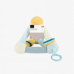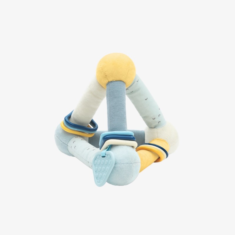 O brinquedo triangular de atividades é uma maneira encantadora de envolver e entreter seu bebé, proporcionando alívio durante a dentição e inúmeros momentos felizes.
