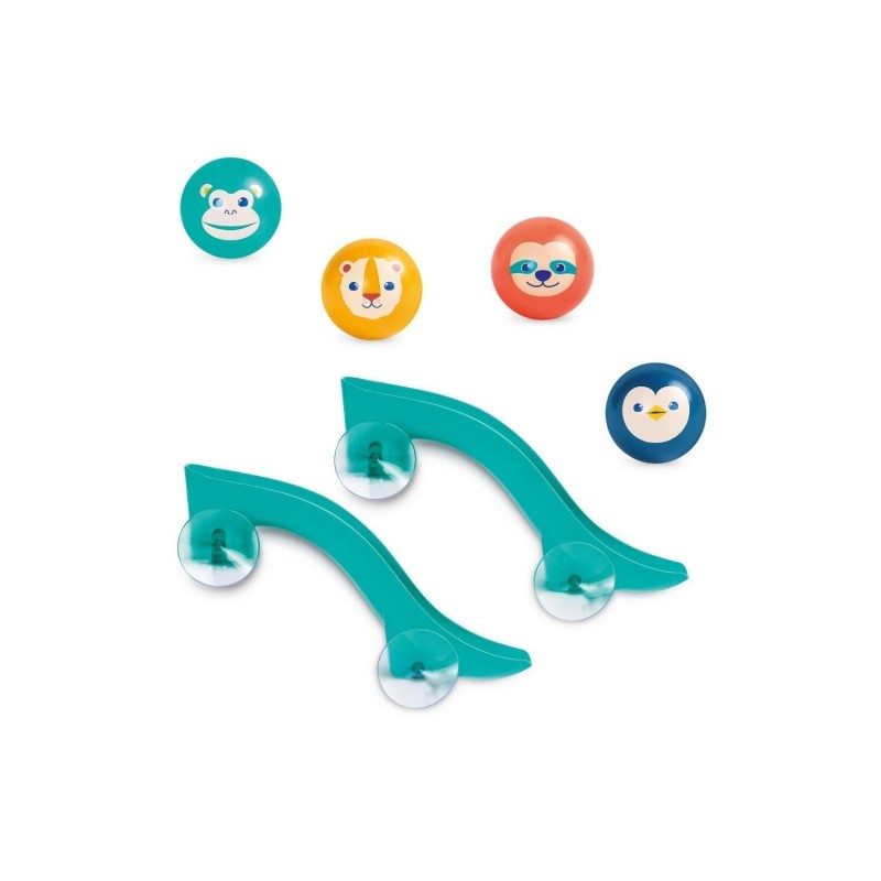 Com estes dois grandes escorregas que podem ser fixados na banheira ou numa superfície lisa, a hora do banho transforma-se num verdadeiro parque de diversões.