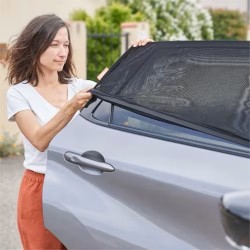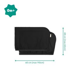 Formato extensível até 110 cm de largura e 60 cm de altura. Protege da luz e reduz o calor.