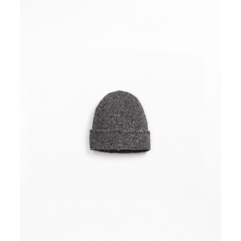 Este gorro tricot é feito em malha com mistura de lã, lã reciclada e viscose, na cor Cinza Escuro.
