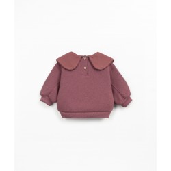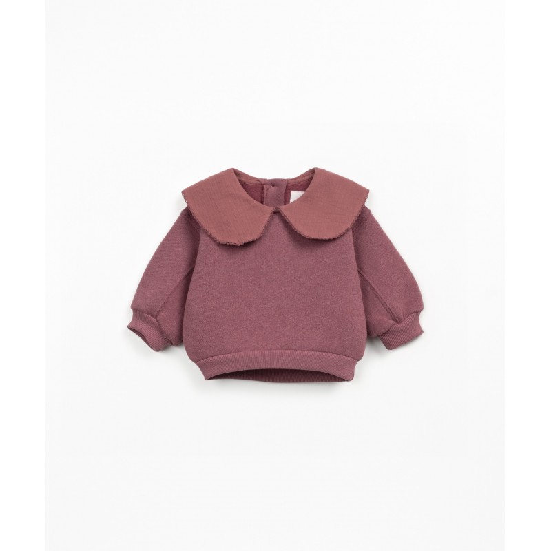 Esta sweat felpa é feita em malha com mistura de algodão, algodão reciclado e poliéster reciclado, na cor Rosa Escuro.