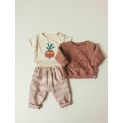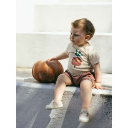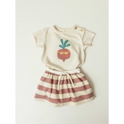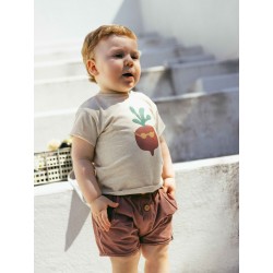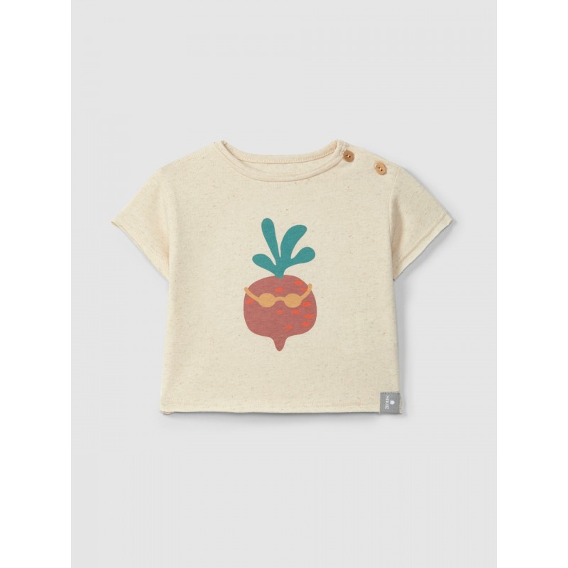 T-shirt efeito rústico em malha jersey com linho e estampado na frente.
