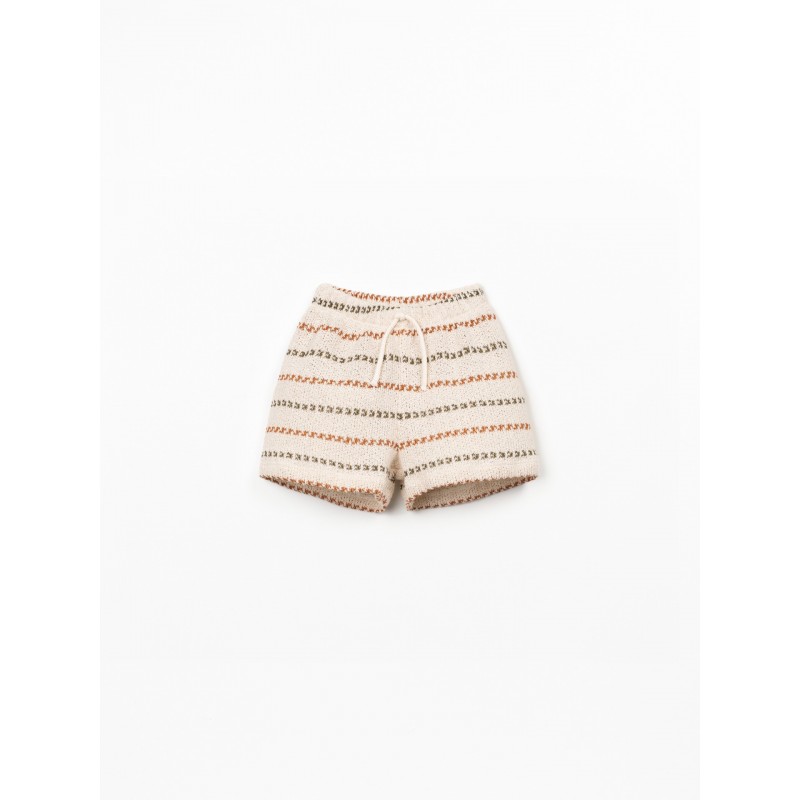 São um modelo com cinto elástico, aplicação de cordão decorativo e o nosso padrão de riscas.