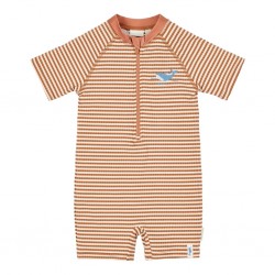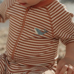 O tom marrom quente com listras finas e a sutil estampa de baleia adicionam um toque de fantasia a cada momento na água.