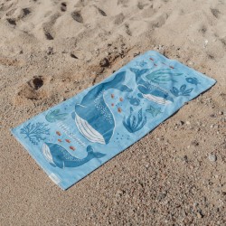Depois de se divertir na água, é hora de se secar e claro, faz isso com estilo com a toalha de praia Ocean World Blue.