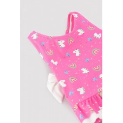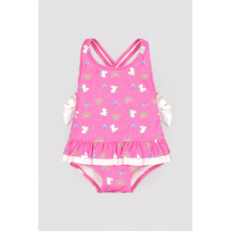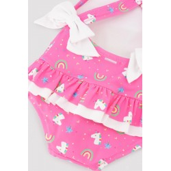 Fato de Banho com estampa de unicórnio com alças cruzadas e laços.