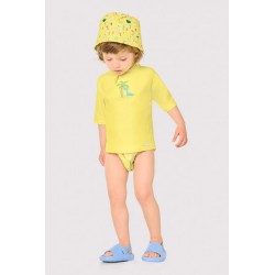 Decote redondo e mangas curtas para maior proteção dos ombros.