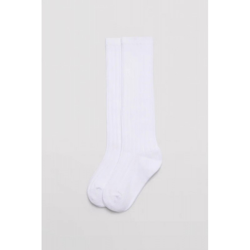 Meias Altas Estas meias compridas infantis são confeccionadas em algodão macio de alta qualidade e apresentam uma textura canelada que garante um ajuste confortável e durável.